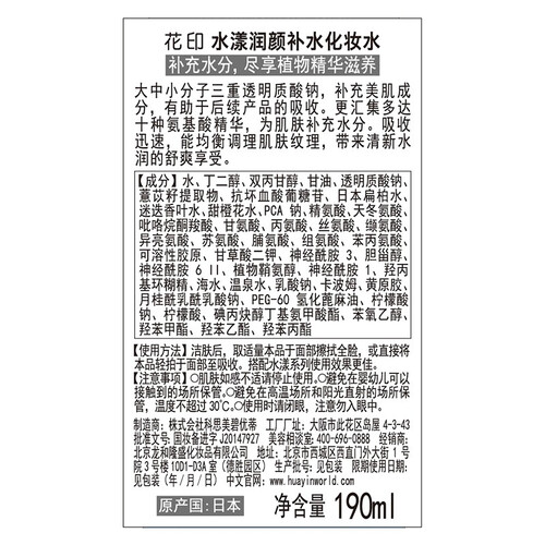 花印 补水保湿润颜爽肤水