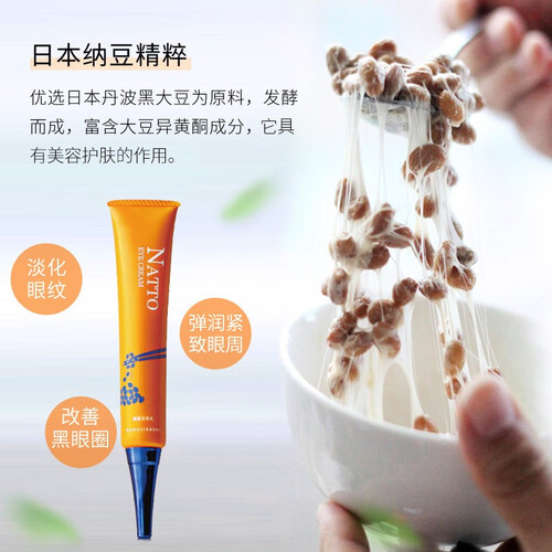 日本原装进口眼霜,内含丰富纳豆精粹,可以有效淡化眼部细纹。复配多重植物提取,紧致眼周,改善眼部干燥。