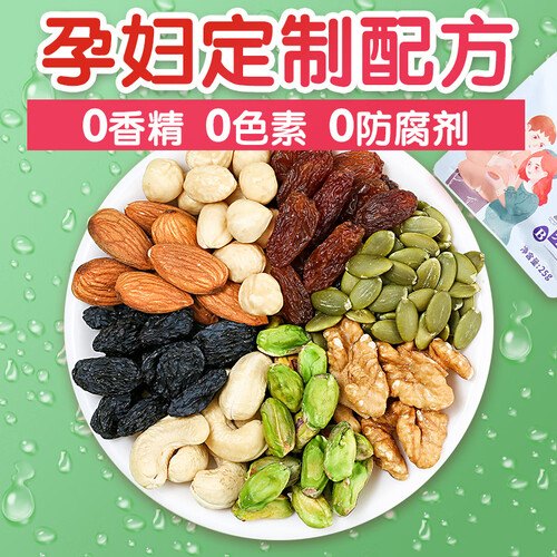 无任何食品添加剂,保留了坚果的营养成分,孕妇可放心食用。选用多种果仁果干组合,营养配比均衡,满足每日身体所需。