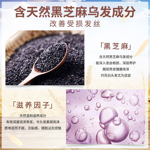 质地不油腻,涂抹后能够快速吸收,轻松改善受损的发质,让发丝变得更加垂顺自然。添加黑芝麻精华深层养护,秀发更加健康。