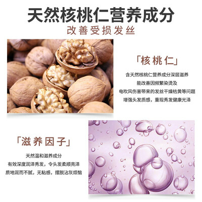 针对烫染后受损严重的发质进行滋润和养护,能够快速吸收,不显油腻。含有核桃营养精华,天然滋养头发,轻微定型。