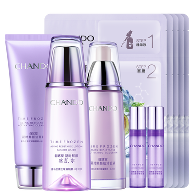内含冰肌水、乳液以及洁面乳,新升级的休眠科技能够使肌肤抵御外界的伤害,锁住水分能够缓解皮肤干燥泛红之症。