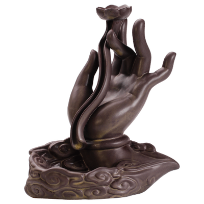 以观音佛手为创意原型,配以莲花与祥云图案,使香炉既美观又实用。香炉用仿古的釉面制作,触感舒适,放在家中古韵悠扬。