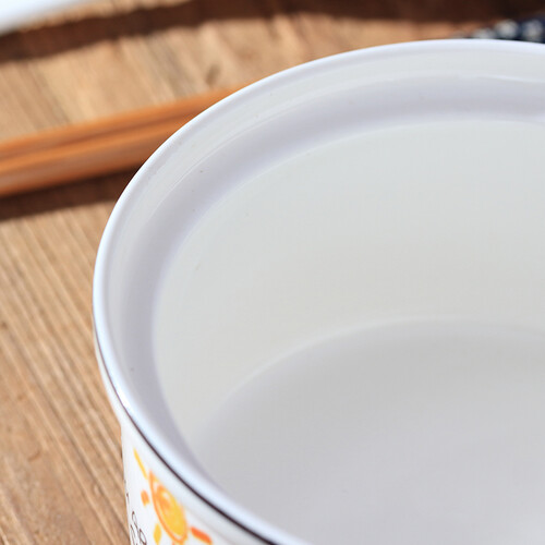 此款添加时尚精美图案,采用优质进口花纸,健康无害更放心;把手添加预留小孔,可放置勺子或筷子,有效防止丢失。