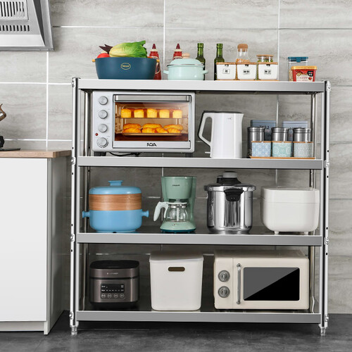 置物架采用加厚无磁不锈钢面板,承重能力强,耐磨防油防污易清理;层距可调节,方便放置不同物品。