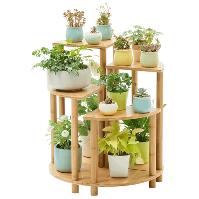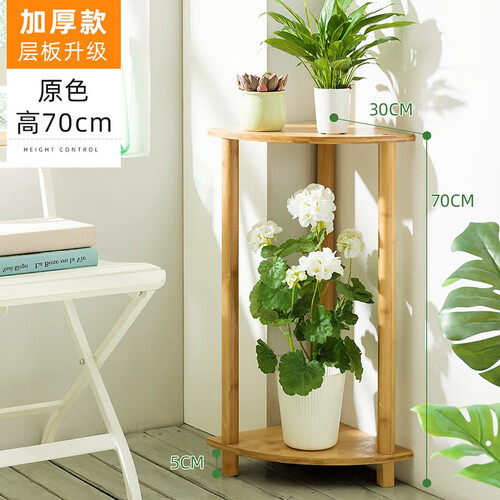 扇形转角设计,充分利用边角空间,小巧美观,空间布局合理,摆放更多盆栽。底层板距地面5CM,立柱脚底更加稳固又扎实。