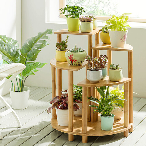 木马人 组合扇形实木多层花架
