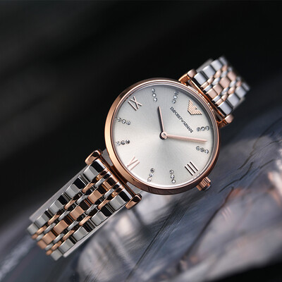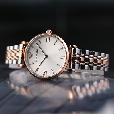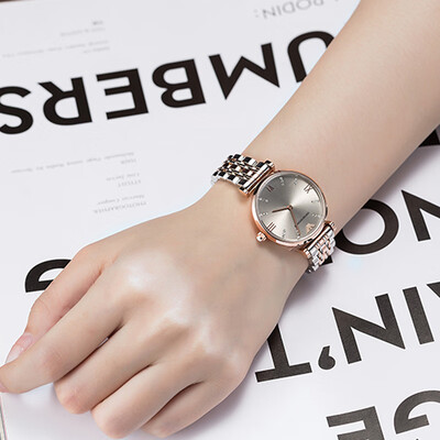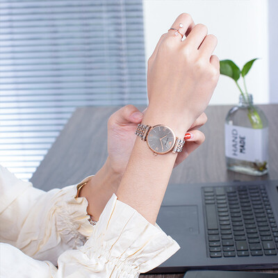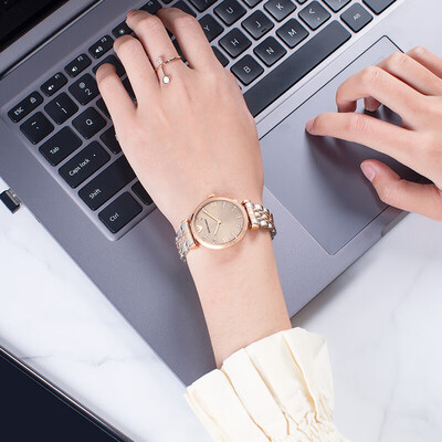 镶钻时标设计,光泽璀璨迷人,与间金钢带相互结合,演绎出与众不同的优雅浪漫风格,矿物玻璃镜面,强度高,耐磨防刮花。