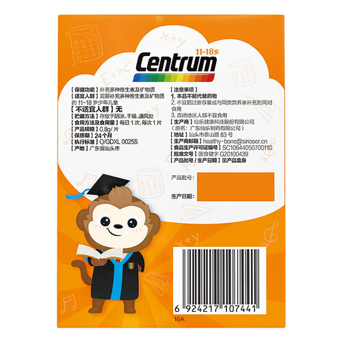 该产品含有多种维生素、叶酸、铁、锌等营养元素,可补充人体日常所需,让身体更强壮,适合11-18岁青少年食用。
