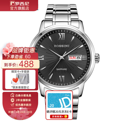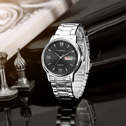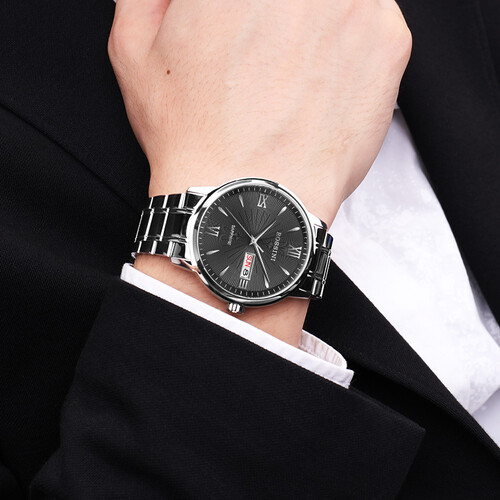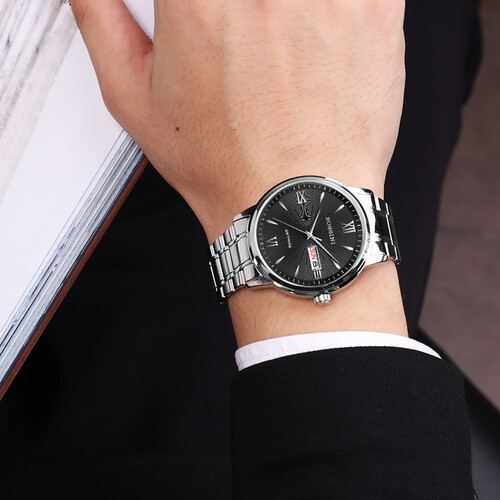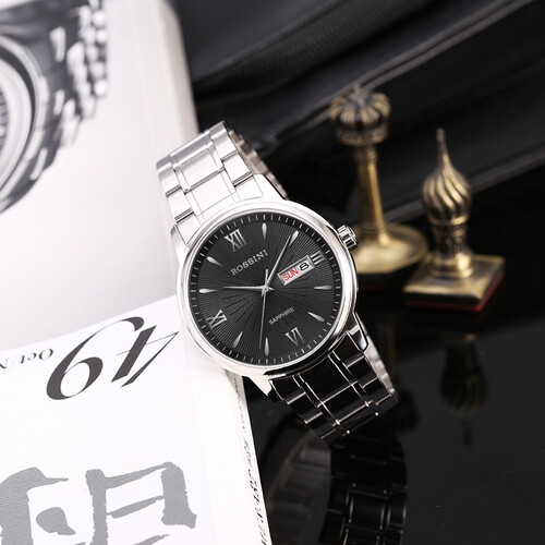 黑色表盘显得沉稳,能够展现出低调的魅力。表壳选用精钢材质打造,亮泽出众。
