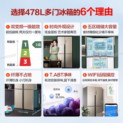 机身666mm,采用纤薄设计,可以嵌入厨房,更节省面积。478L大容量存储空间,方便各种食材精细分类,满足你的囤货需求。