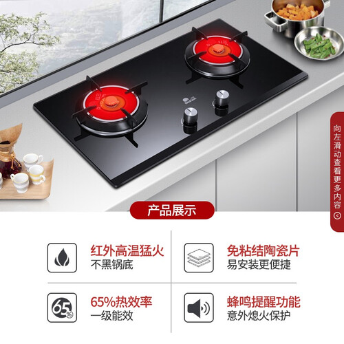 燃气灶拥有强劲火力,热效率达到68%,符合一级能效,节能省气效果出色,实现省钱。烟机具备大吸力,排烟迅速,助力清爽下厨。