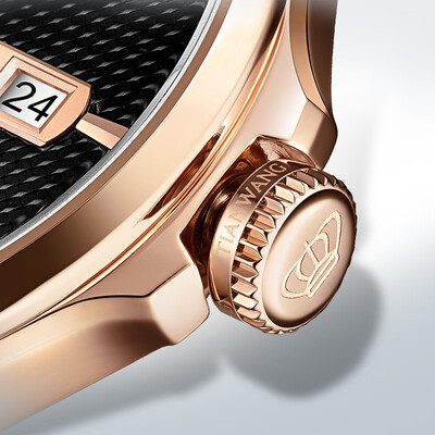 配有人工合成的蓝宝石玻璃表镜,坚硬耐磨,不易留下刮痕。表盘采用了双圈设计,低调而不繁琐,让精彩倍增。