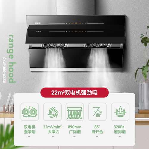 配置320大风压瞬时劲吸功能,无惧爆炒。5.0KW大火力,爆炒更给力,锁住食材营养,减少等待时间。