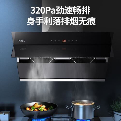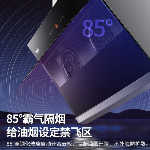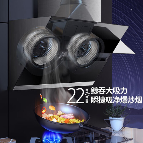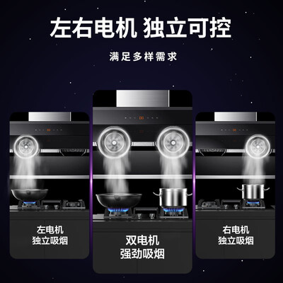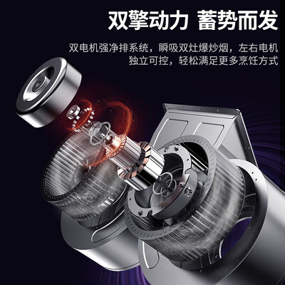 这款烟灶套装采用双电机的配置设计,拥有强劲的吸力,无惧爆炒压力。黑晶全面屏启幕,设计惊艳美观大气。