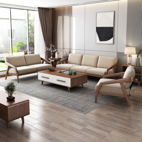整个沙发采用FAS级北美进口白蜡木,不易开裂变形。搭配整块海绵座包,无胶水粘接,更健康,无胶水异味,让家人更健康,让家具更环保。
