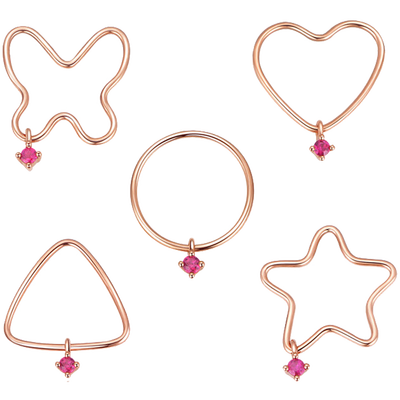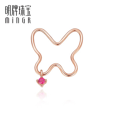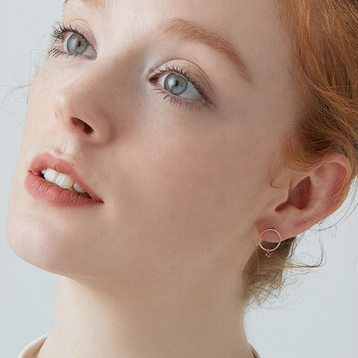将基础的几何元素融入到耳钉的设计之中,简约又富有时尚气息。耳钉上点缀有亮丽的红宝石,光芒更加璀璨闪耀。