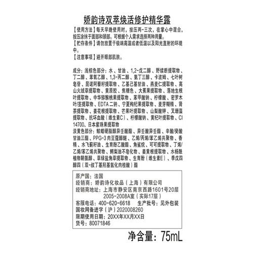 娇韵诗双萃焕活修护精华露