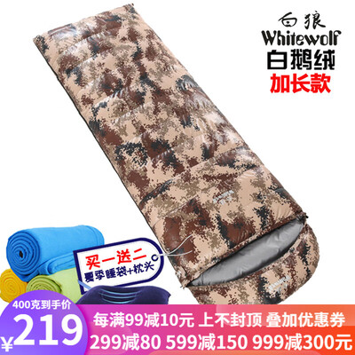 白狼 白鹅绒保暖隔脏迷彩睡袋