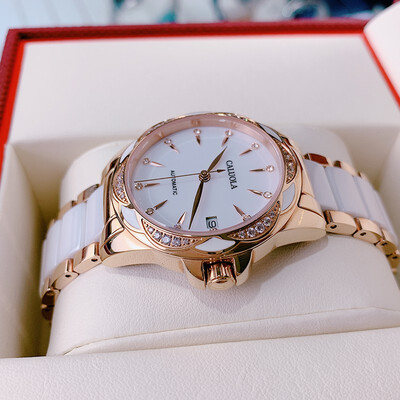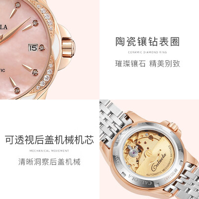 全自动机械机芯设计,可自动上链,使用无需更换电池。幻彩贝壳字面设计,更有生动感,展现出时尚的气质。