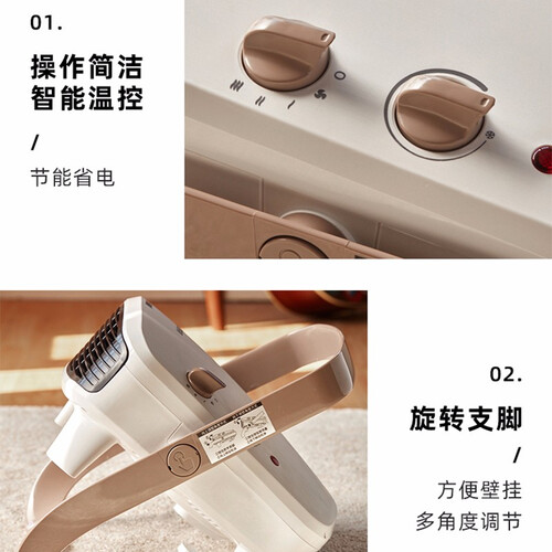 配备有烘衣架,可放置衣物,快速烘干,便捷实用。独特支架设计,可调节送风角度,满足不同的取暖需求。机身小巧,轻便易携。