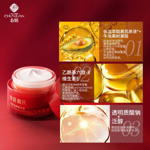 蕴含丰富的植物营养成分,可调整肌肤滋润平衡,让肌肤紧实有光彩。且具有抗氧化效果,有效防止蛋白流失,轻松摆脱岁月痕迹。