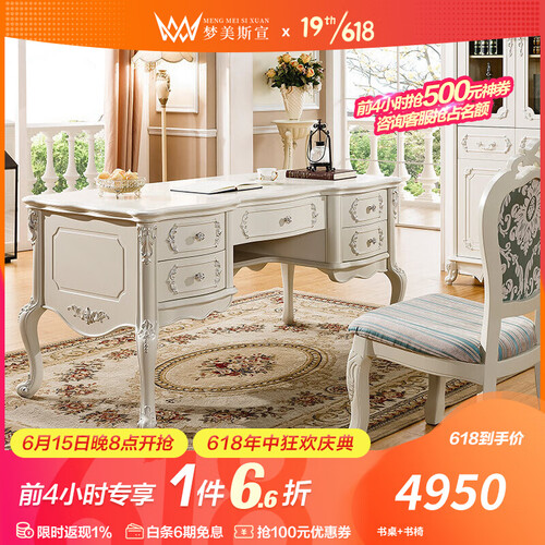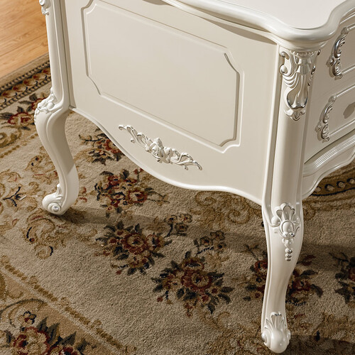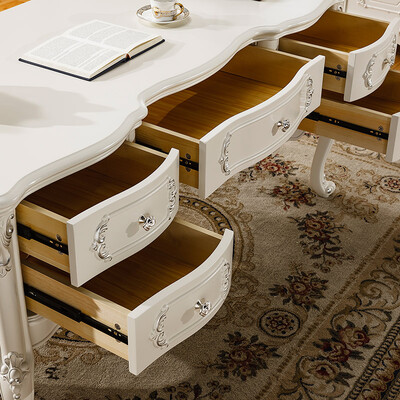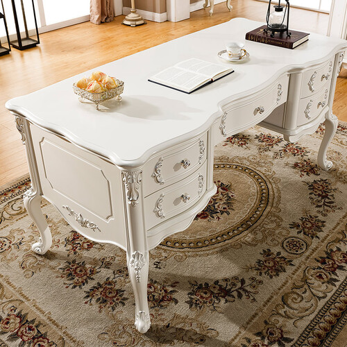 采用欧式风格设计,搭配描银雕花点缀,使书桌整体看起来更加优雅大气,摆放在书房中,为生活增添仪式感。