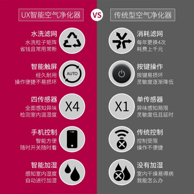采用可水洗粒子矩阵,清洁更方便,无耗材更环保省钱。可使用手机APP远程控制,操作方便,净化效果尽在掌握。