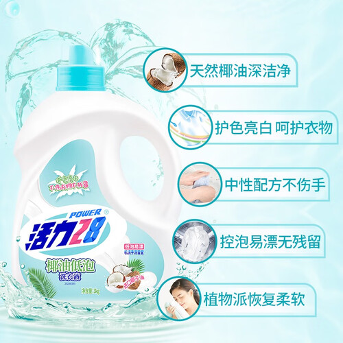 将天然椰油精华融入到洗衣液中,其效果温和,不易损伤织物或手部。它可以支持机洗清洁,具备较强的实用性。