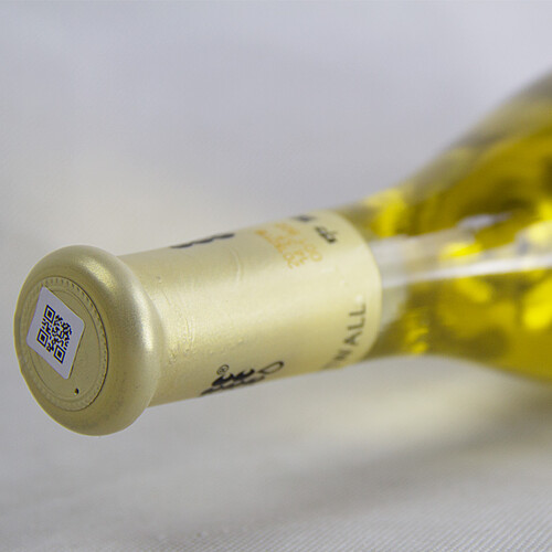 锡瓶封口内嵌软木塞,留有小孔,白葡萄酒缓慢呼吸逐渐成熟,浅黄色的酒液入杯晶莹剔透,酒香优雅协调,入口圆润爽滑。