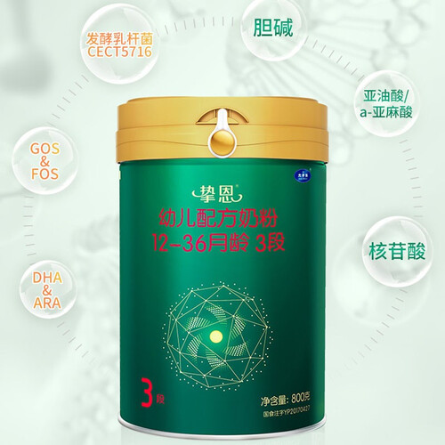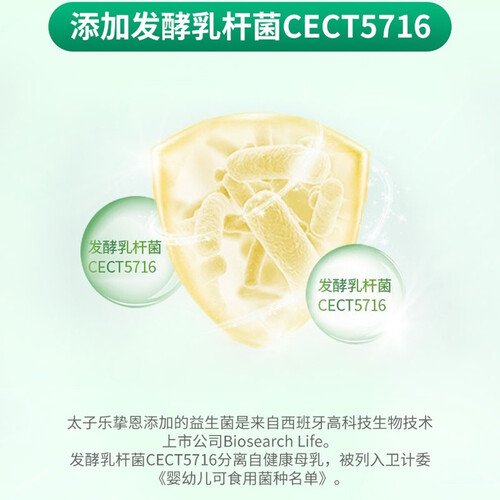 特含DHA、ARA、胆碱三重营养结构,促进宝宝大脑全面发育,更聪明。添加发酸乳杆菌成分,为宝宝带来天然保护。