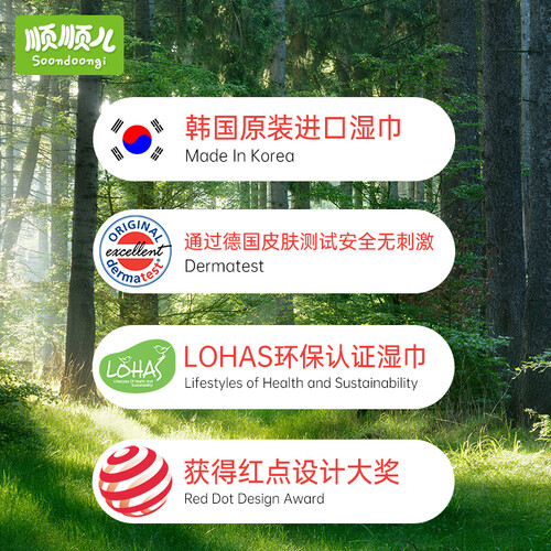 韩国原装进口,无任何化学物质添加,无刺激无致敏,全家人都适用。质地厚实,温和亲肤,可干擦可湿用,让生活更方便。