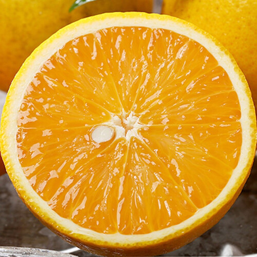 早期采摘的橙子外皮颜色带有青黄色,果肉已经充分的成熟,不会影响口感。果肉里的颗粒晶莹剔透,更加饱满水润。