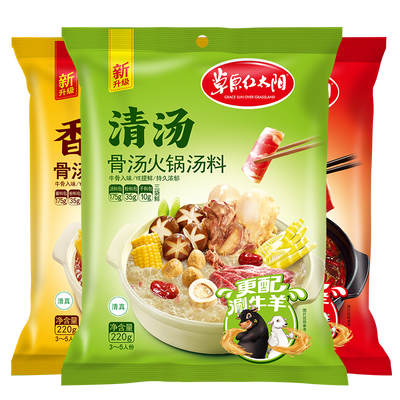 三种口味的火锅底料,满足不同人的味蕾。分量足,经济实惠,你的信赖之选。