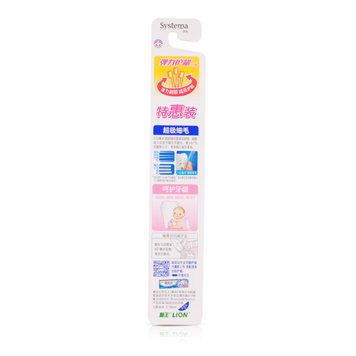 刷颈有弹性,能够弯曲,方便清洁后齿,不会伤害牙龈;超细的刷毛,不仅柔软舒适,还能深入清洁牙缝和牙龈沟。
