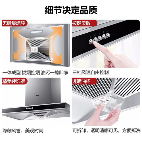 双层滤油网,有效分离油烟,减少油污堵塞,确保油烟机大吸力;符合国家一级能效标准,使用更高效节能,省电环保。