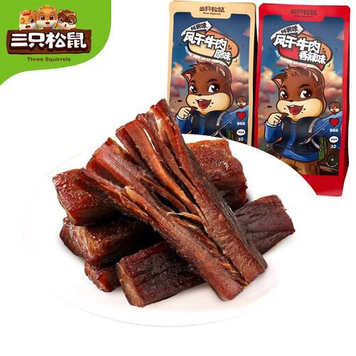 只挑选高品质的牛腿肉作为原料,做出来的肉干肉质紧实有韧性,嚼劲十足。包装也是使用了卡通图案,软萌有趣,很吸引小朋友。
