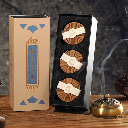 采用厦门自然保护区的天然泉水调香,确保香料散发出自然的香气。套装中拥有120片可持续燃烧2个小时的盘香。