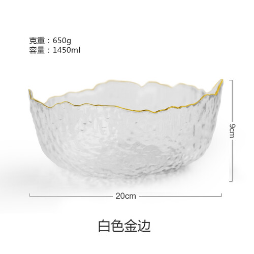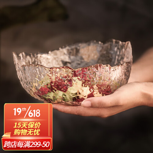 不规则随性造型,纹理如同冬日冰面,晶莹剔透,灯光下闪闪发光,折射美食不一样的色泽,碗口圆润细腻不伤手。