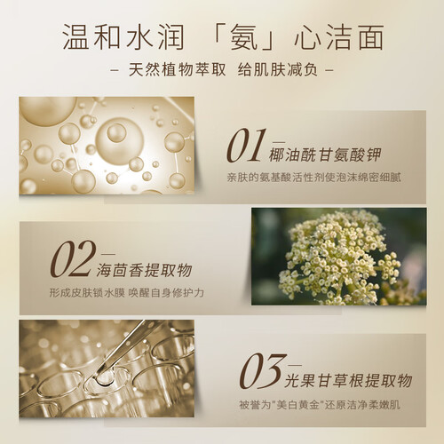 蕴含丰富植物精粹,出色的清洁效果,让肌肤更透彻,轻盈细密的泡沫,能深层清洁毛孔污垢,温和清洁不伤肤。