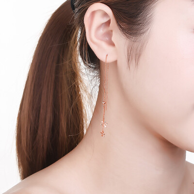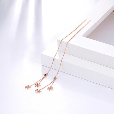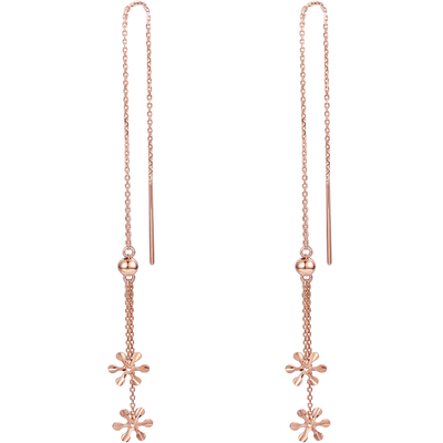 花朵耳线造型设计,款式浪漫优雅,衬托出女性温婉柔美的气质。玫瑰金色耳饰,色泽亮丽柔和,更衬肌肤娇嫩白皙。