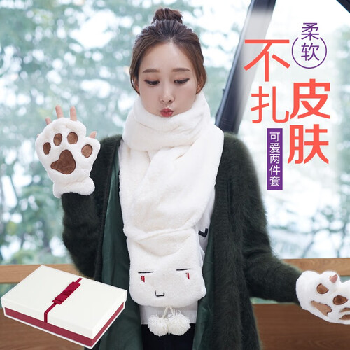 将趣味的卡通图案融入到围脖手套的设计之中,看起来软萌可爱。优选仿兔毛面料制作而成,亲肤柔软,使用舒适。