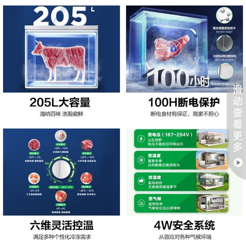 采用4DS制冷系统,360°循环式制冷,快速锁住食材营养,保留原汁原味;100小时断电保护,让食材持续保鲜。
