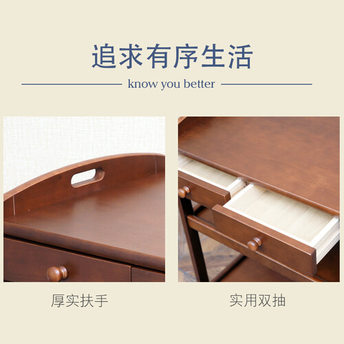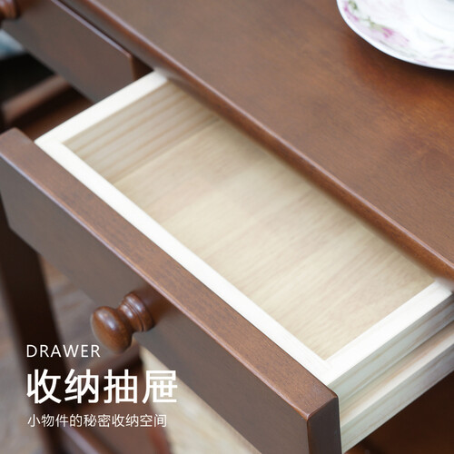双抽屉设计,更多储物空间,让储物空间充分得到细化。采用越南橡胶木打造,外覆环保硝基漆,绿色更健康。