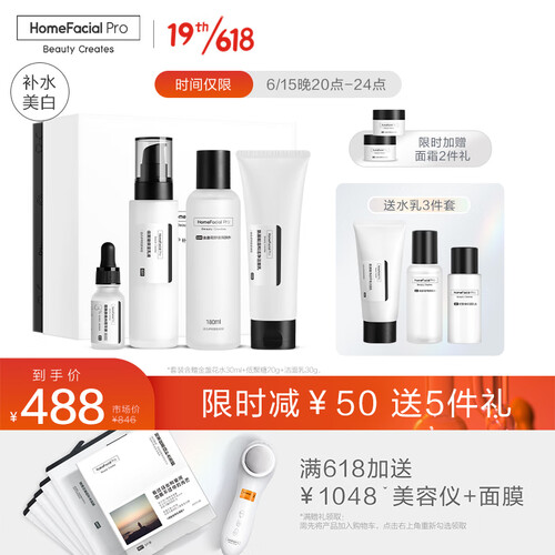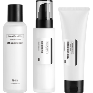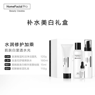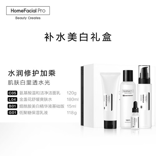 主打补水美白的套装,金盏花成分帮助舒缓补水,改善干燥肌肤。烟酰胺精华,瓦解黑色物质,抵御暗沉美白肌肤。