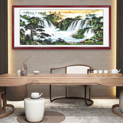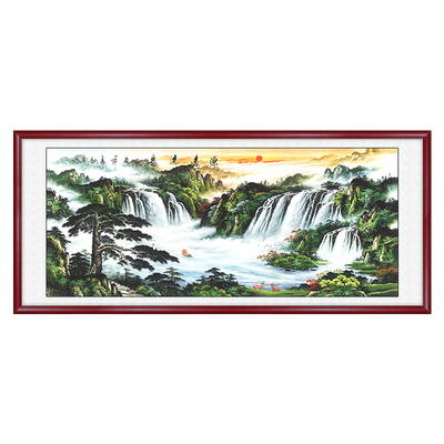 磅礴大气的山水画,细节饱满,色彩分明,搭配加长实木边框,可瞬间提升家居格调,更有传统文化底蕴,悬挂在客厅、卧室都合适。