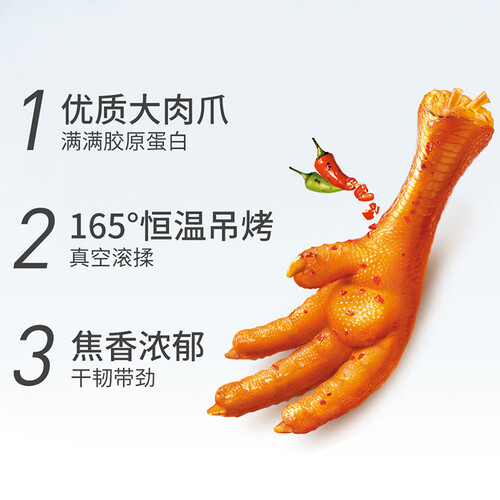 这是一款蜂蜜烤鸡爪,皮弹肉厚、香甜可口,让美味在你的舌尖绽放。采用独立小袋包装,拿取方便不脏手,设计更贴心。