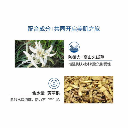 植物复合发酵浓萃,镇定并舒缓紧张肌肤状况,实力改善受损肌肤。添加高山火绒草提取物,提升肌肤耐受力,轻松应对外界刺激。