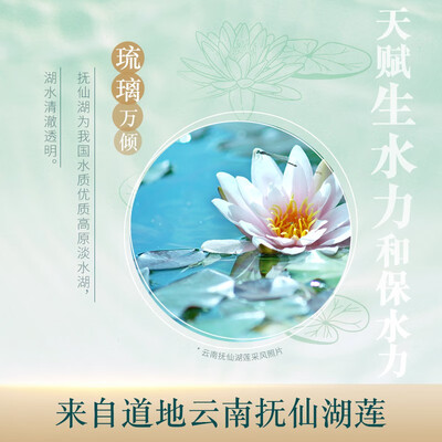 源自纯净水源处生长的抚仙湖莲,然后通过低温声波提取技术,将保湿活性成分提取出来,给眼霜注入强大的水能量。