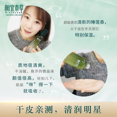 换季时节肌肤干燥?相宜本草用云南莲为你带来满满保湿动力。小分子快速渗透,深入你的肌肤表皮层。